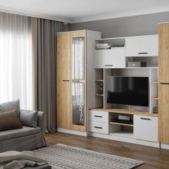 Гостиная СОЛО ЛДСП Белый /ЛДСП Дуб крафт золотой
